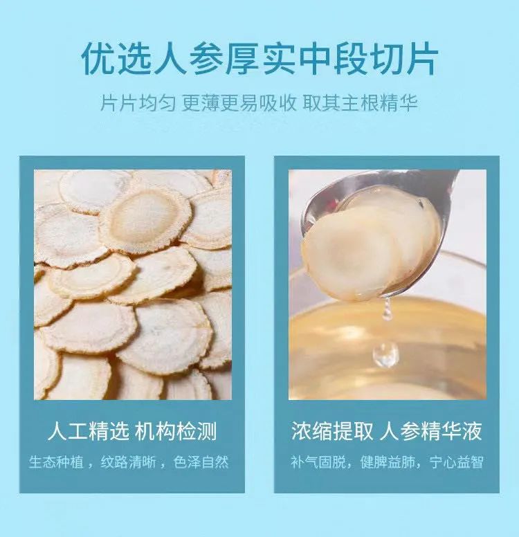 而且人参优选厚实中段切片,取其主根精华,营养更丰富,片片均匀,更薄更易吸收。