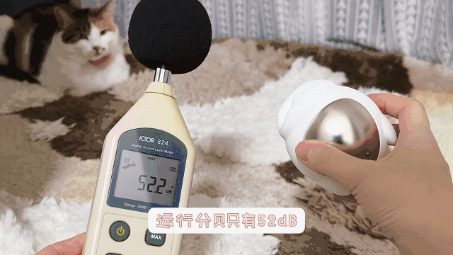 运行分贝实测大概 52dB 左右,属于那种“稍微有点存在感,但关上门别人根本听不到”的级别。(↓淡定观摩的小猫)