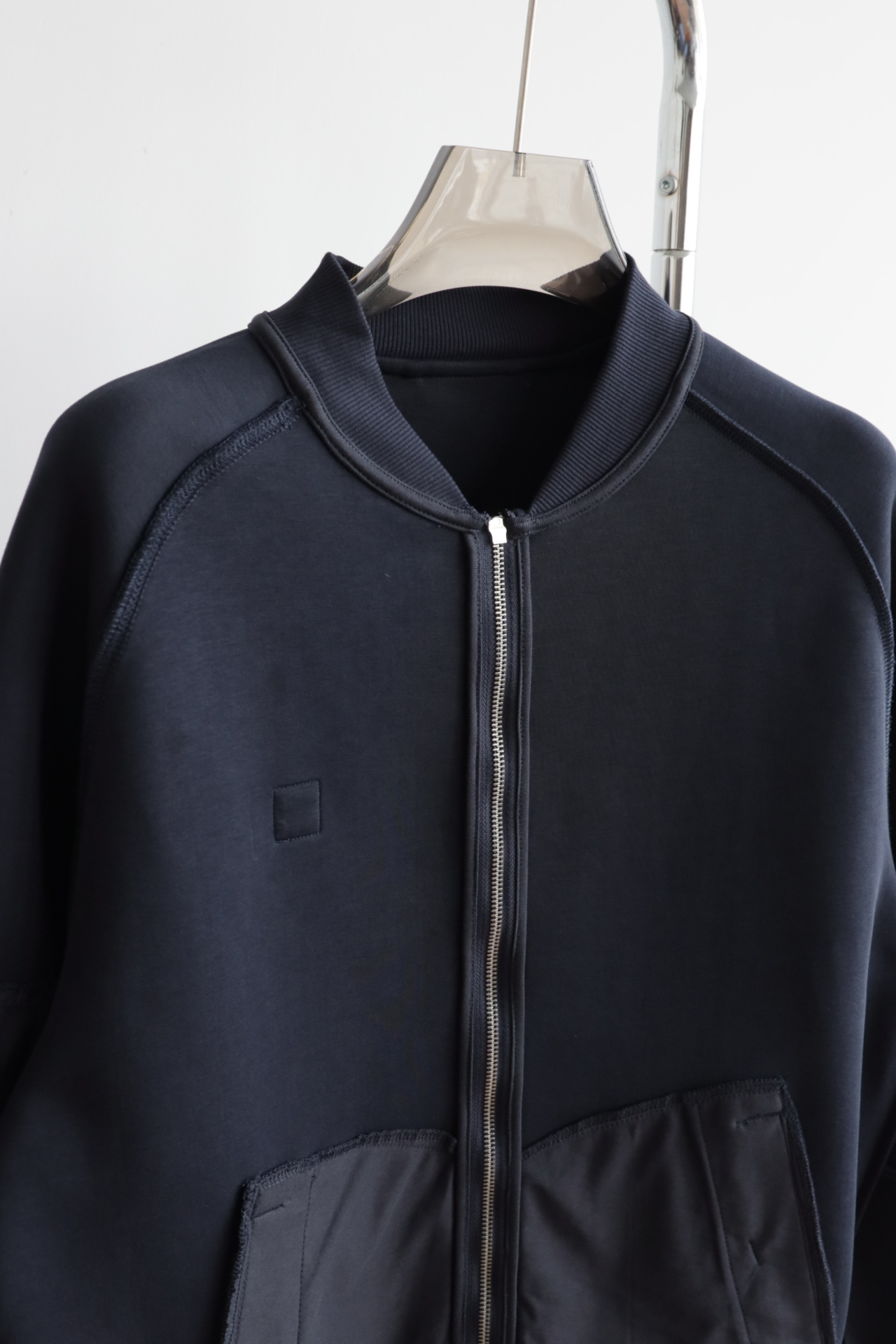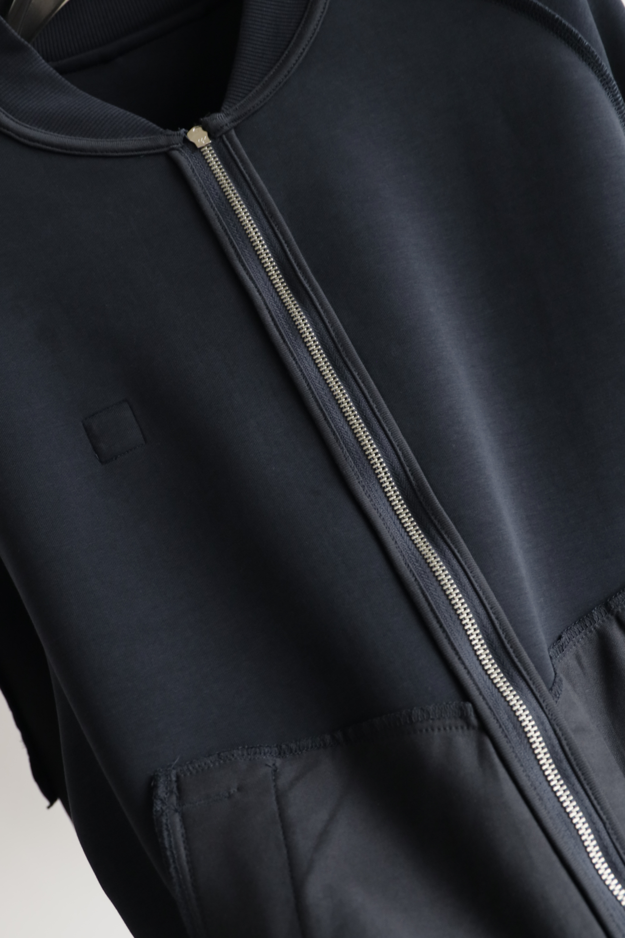 科技感设计与前卫构造打造此款混合材质开衫