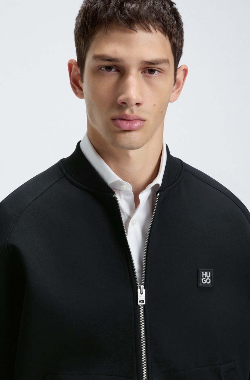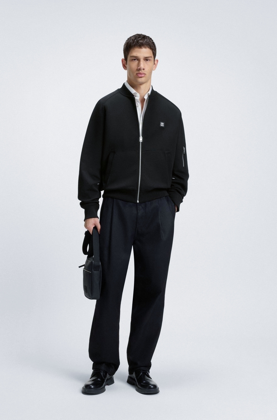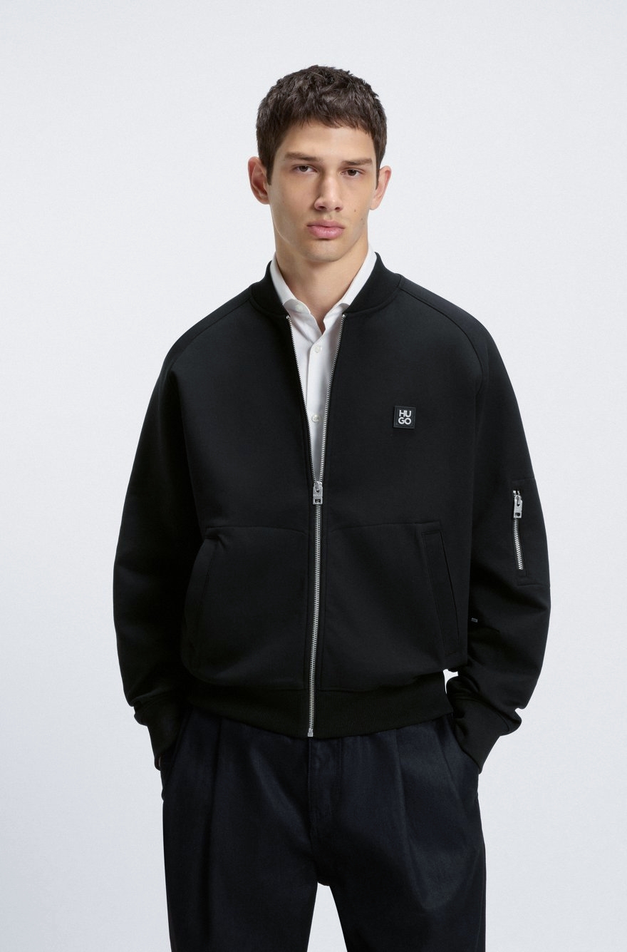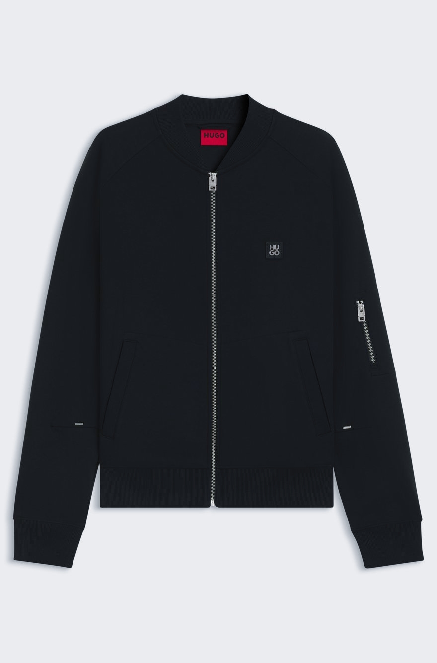 袋鼠式口袋,点缀针织饰边合成材料标识贴片