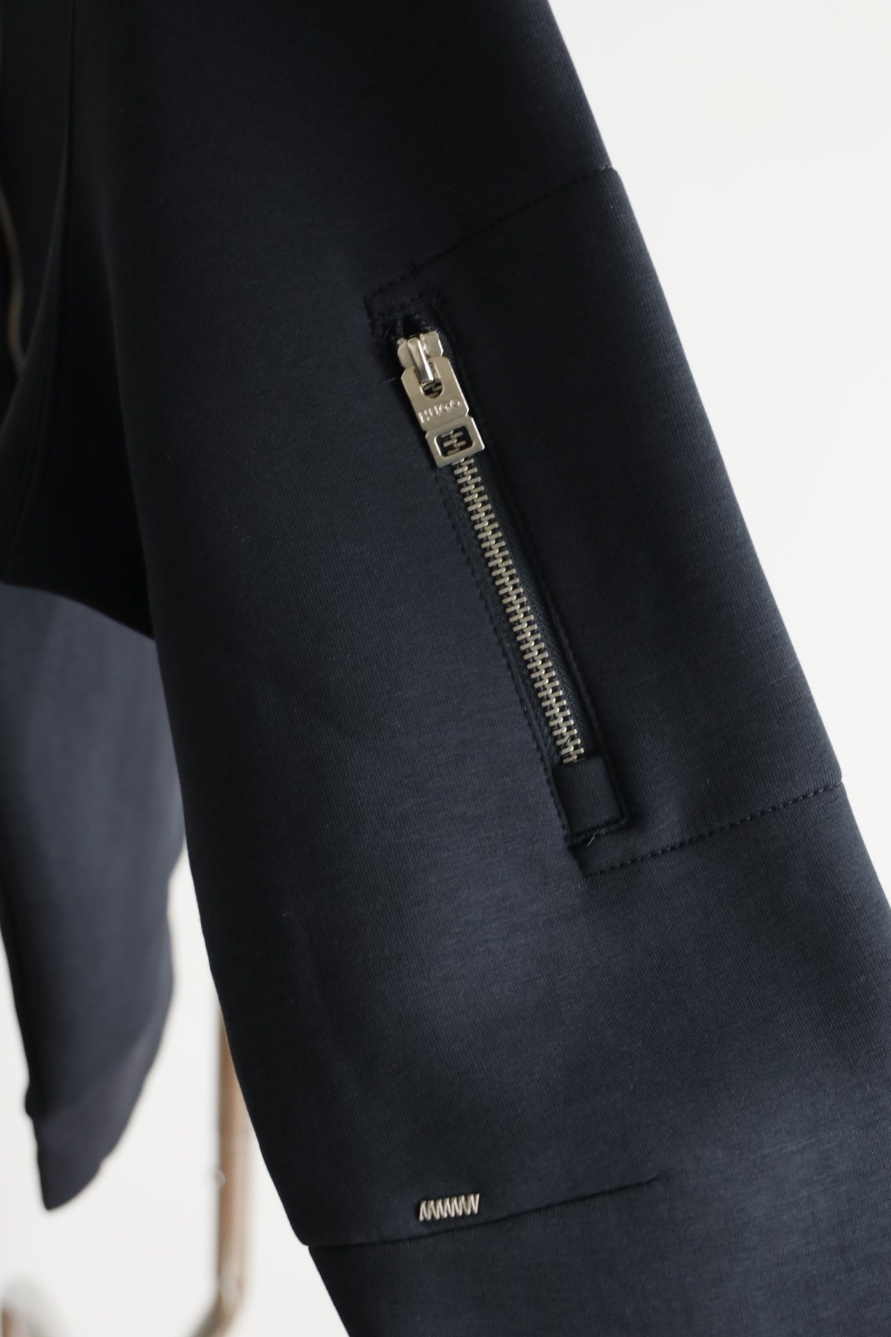 面料密度高, 手感细腻厚实,胳膊口袋装饰