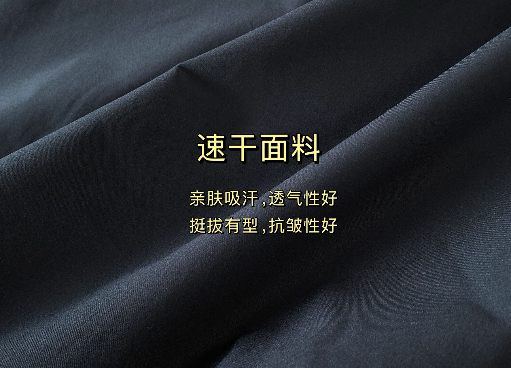 速干面料,面料手感细腻,触感舒适,亲肤吸汗,透气性好。可以轻松抵抗雨水和同时具有出色的弹性及恢复性,挺拔有型,抗皱性好 。