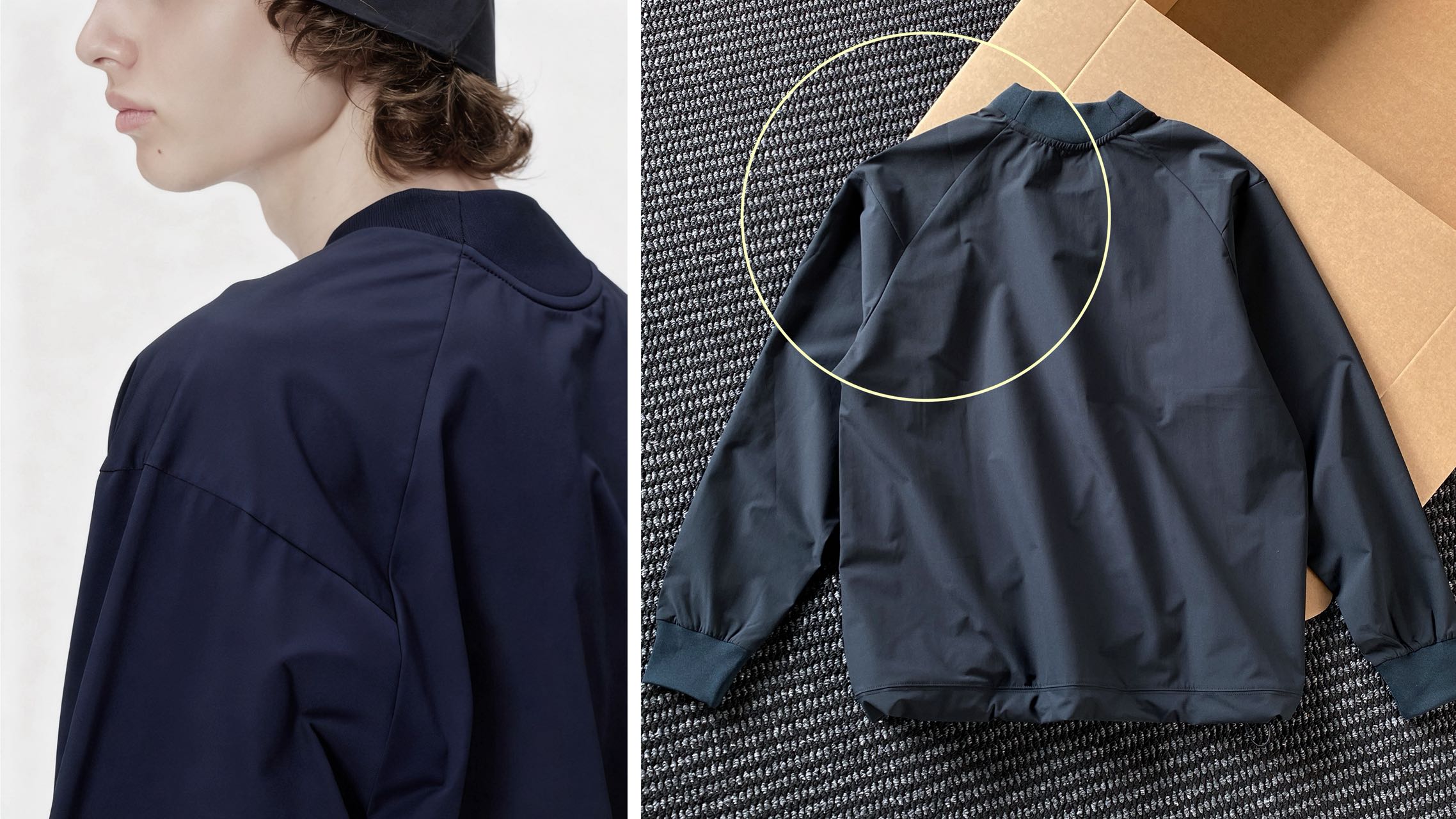 宽松版型 连肩袖设计!这款外套采用落肩版型 无肩宽设计!肩部和袖筒融为一体!