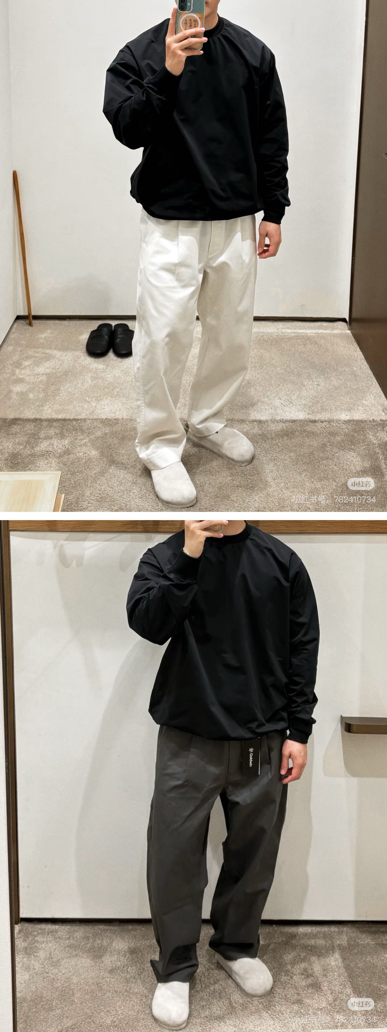 黑蓝两色,合身版型,不起球。不变形不易皱褶