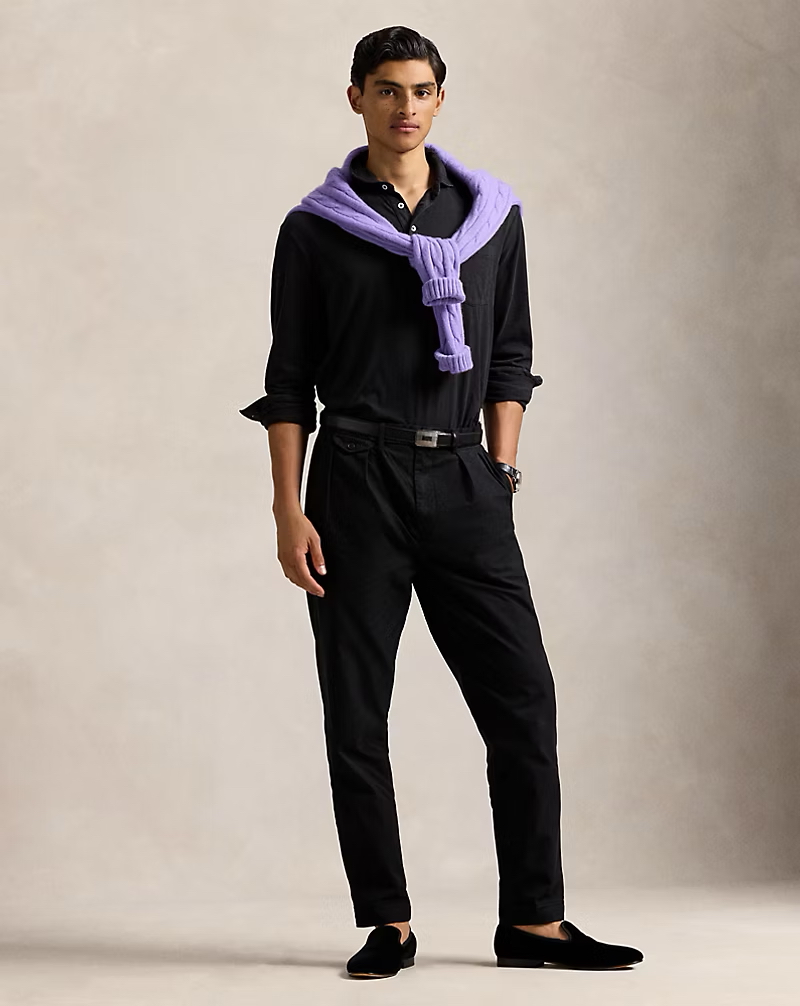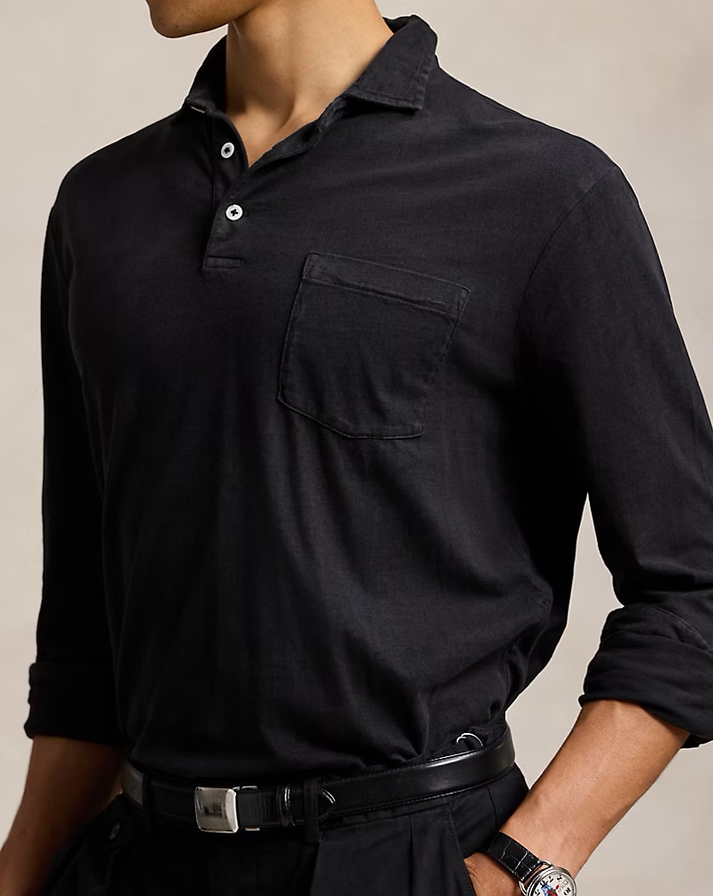 R.L 复古水洗做旧 翻领全棉针织长袖POLO衫