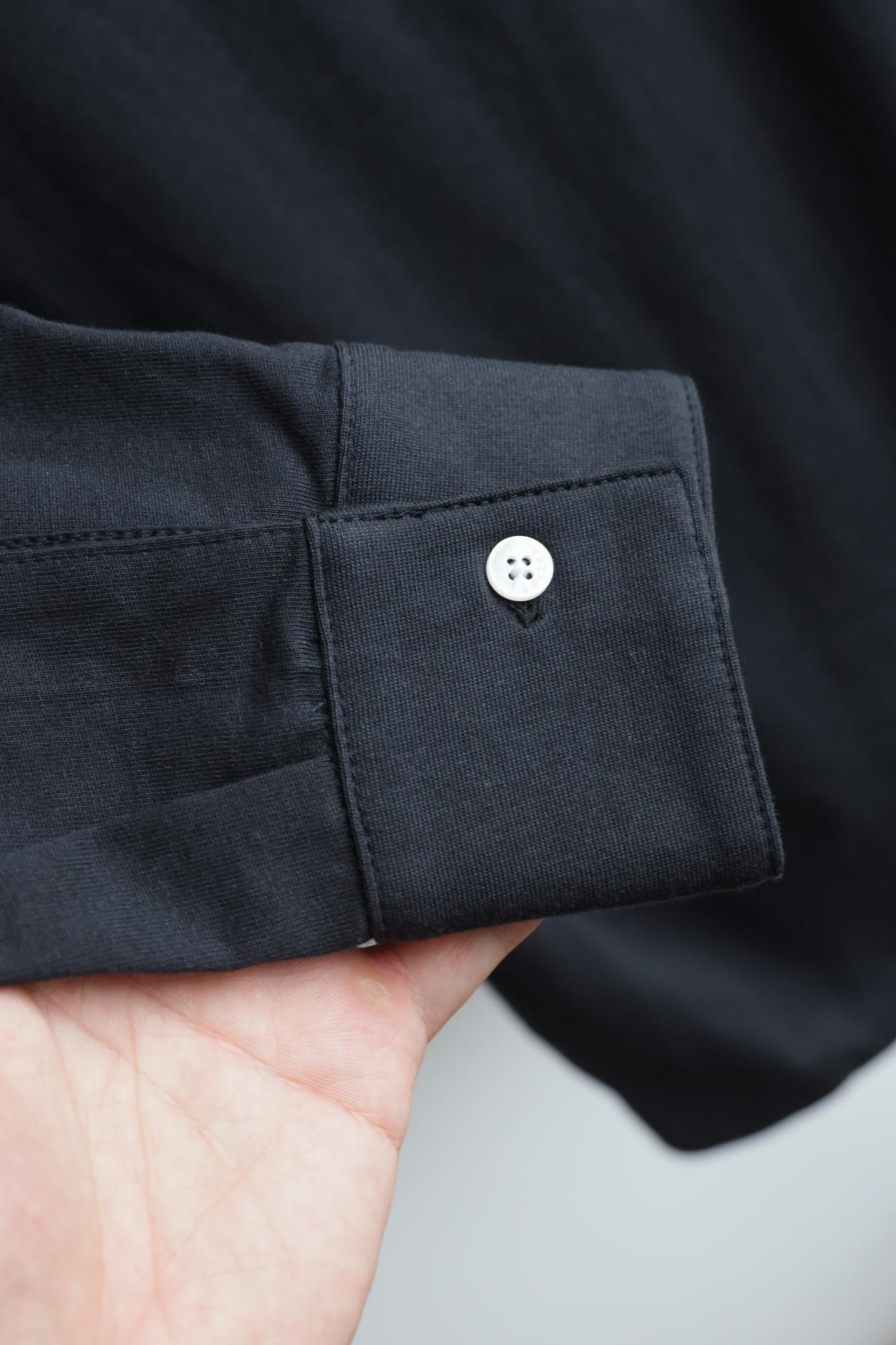 高品质的螺纹领口与螺纹袖口,有效抵抗多次穿着后的变形,更确保了与肌肤接触时的舒适贴合感。