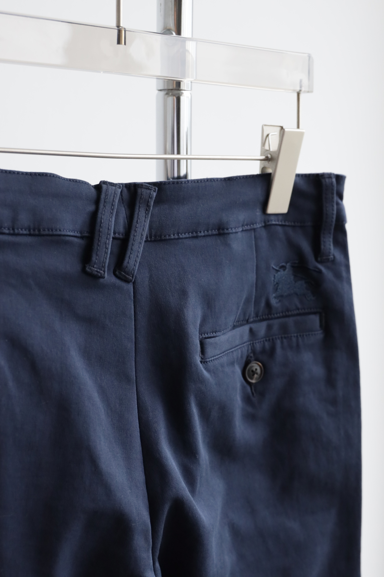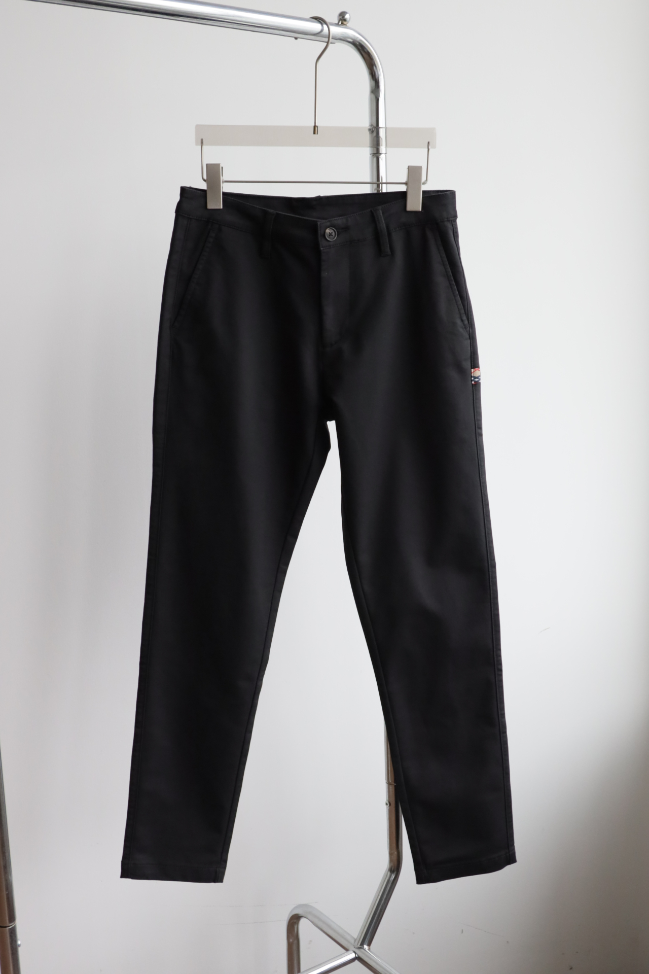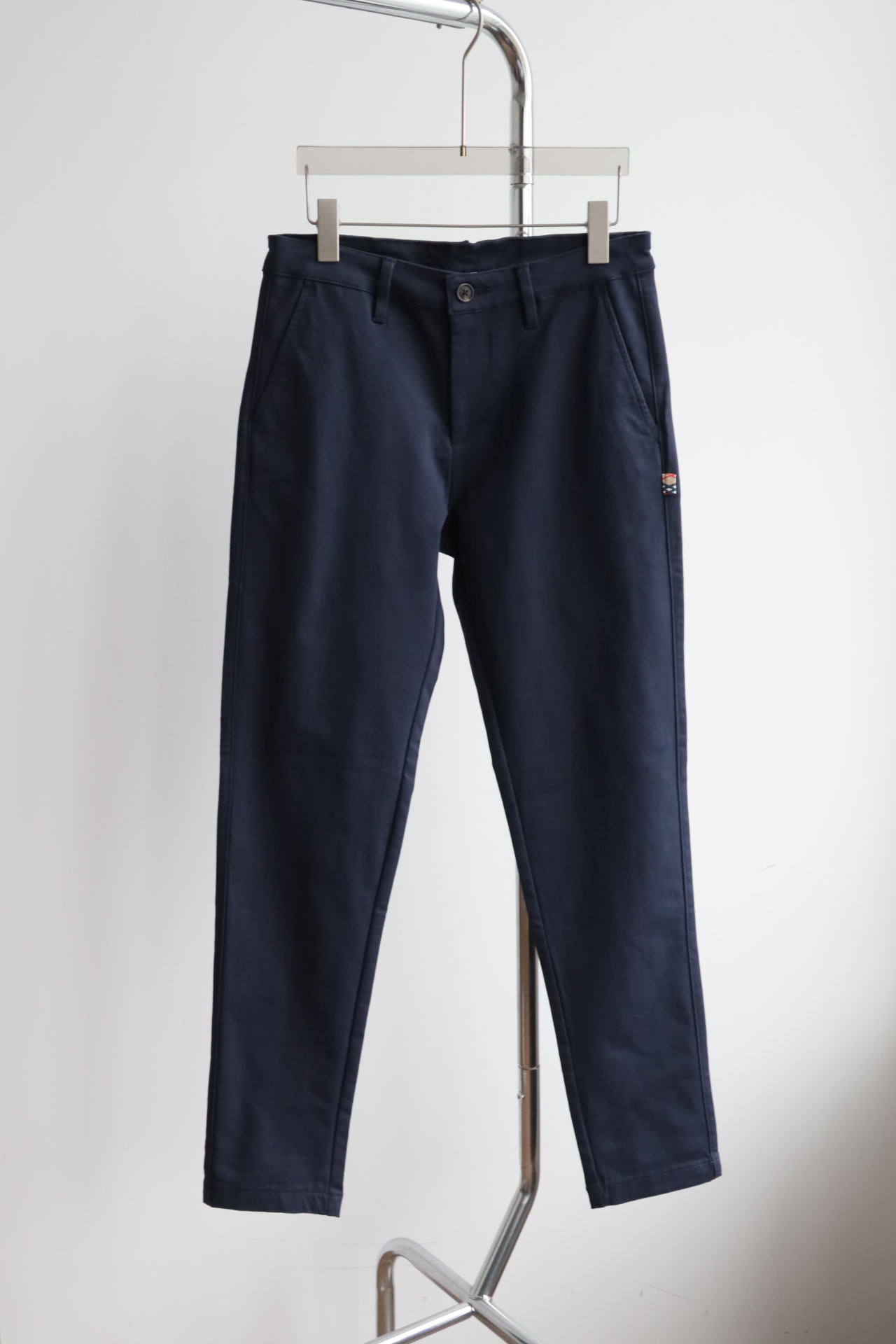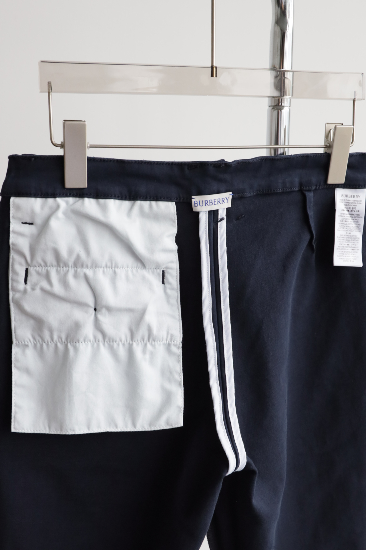 同色斩马刺绣标在后腰侧,大腿侧边格纹旗标装饰