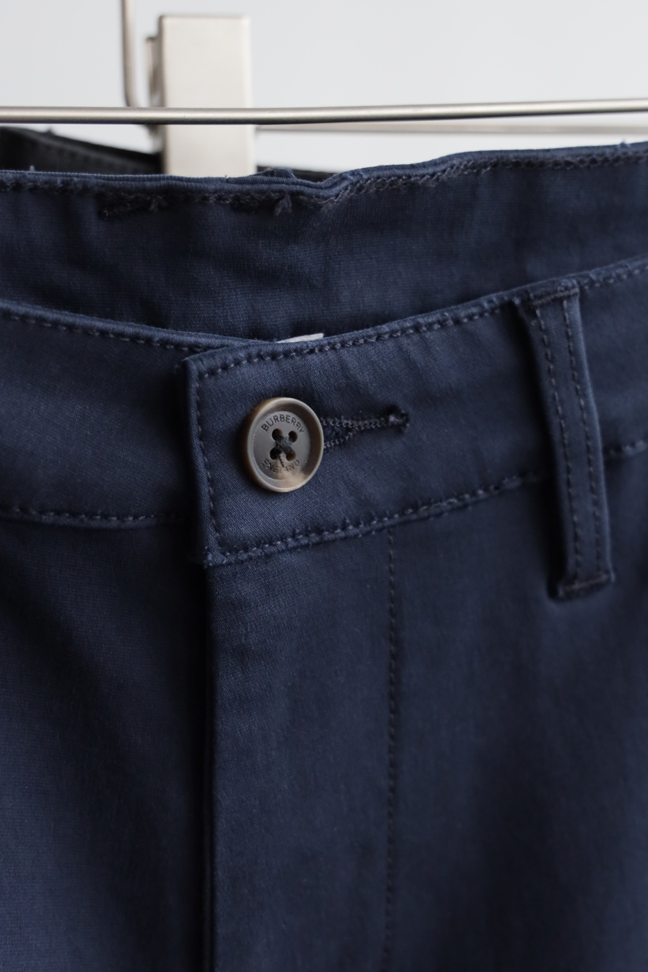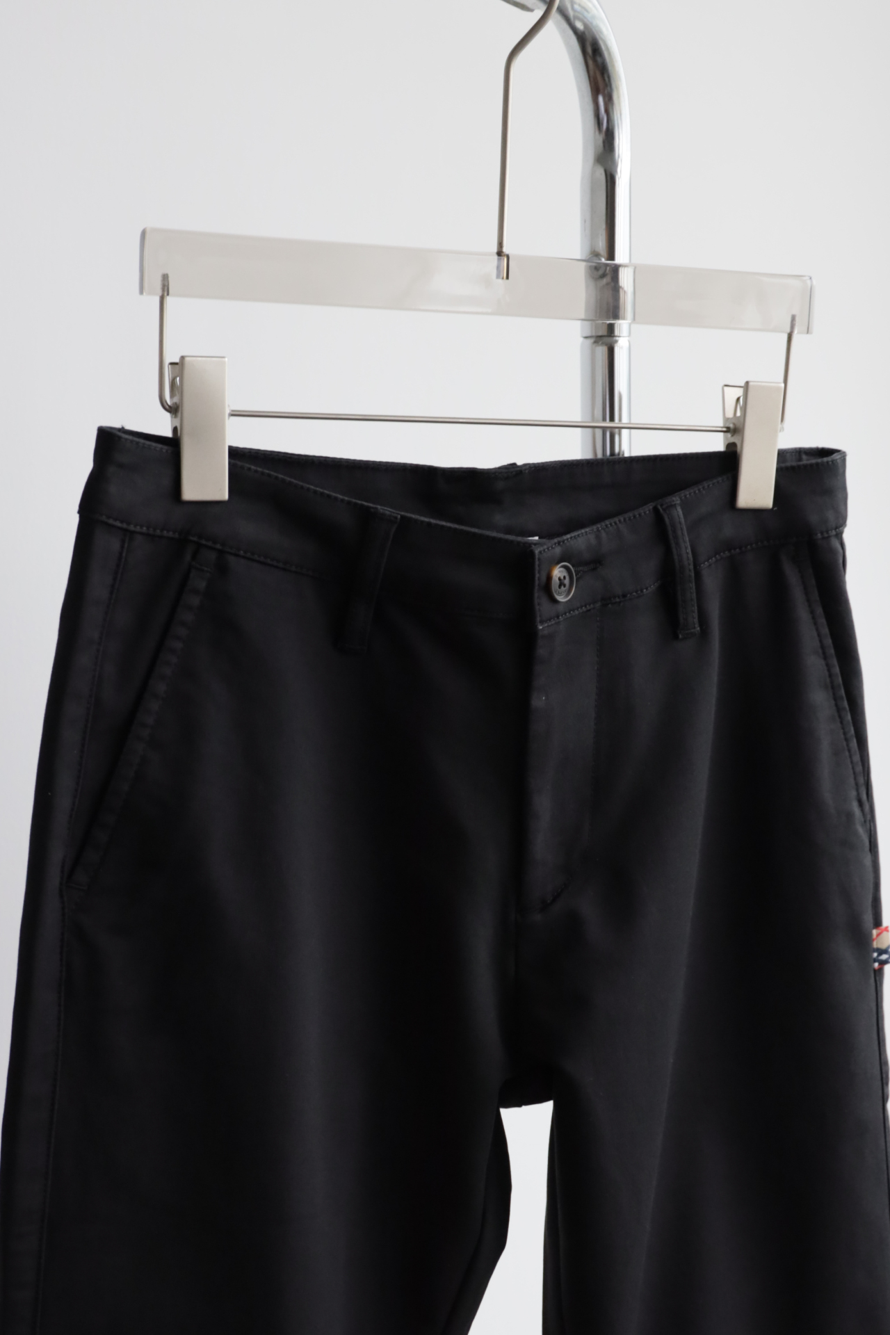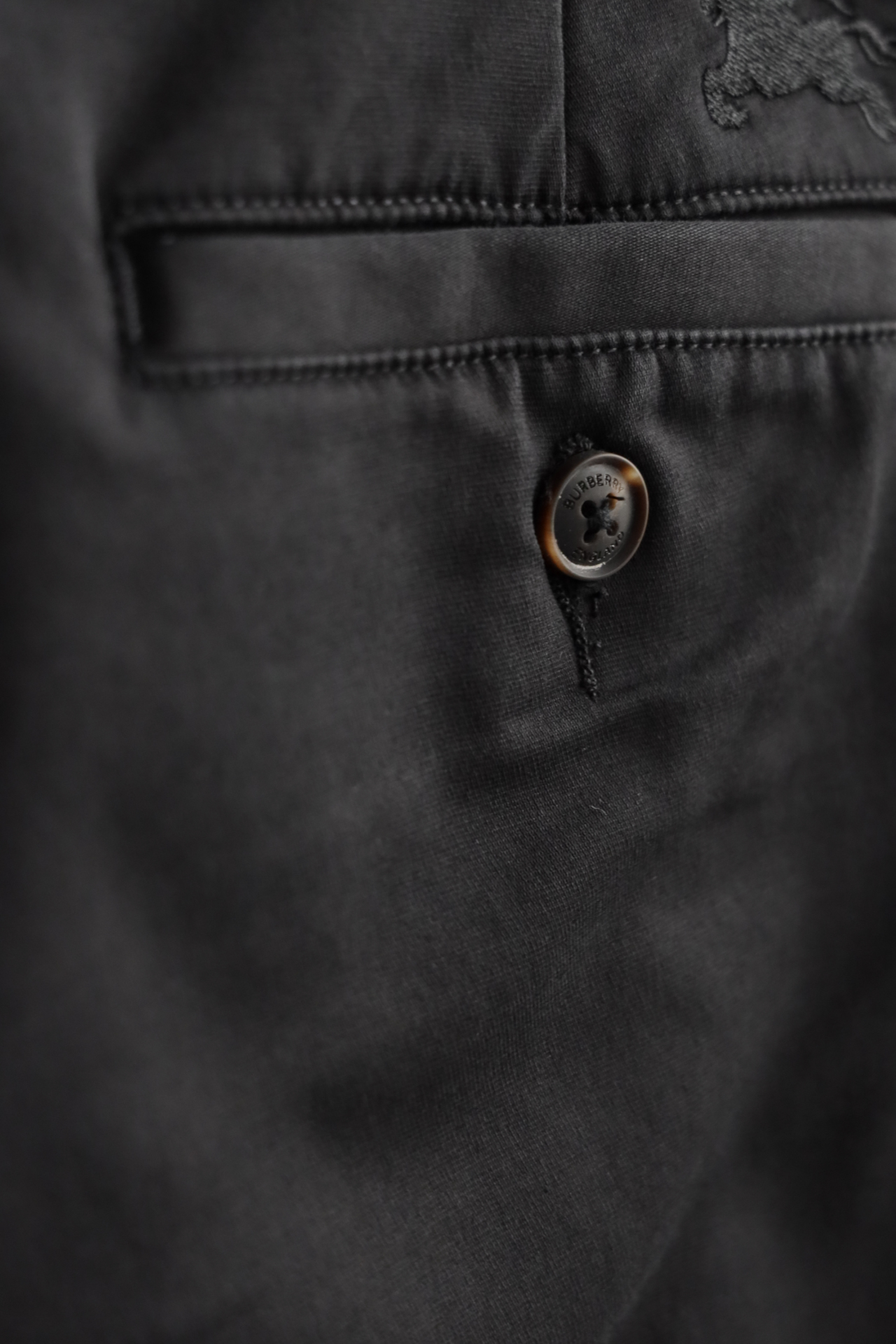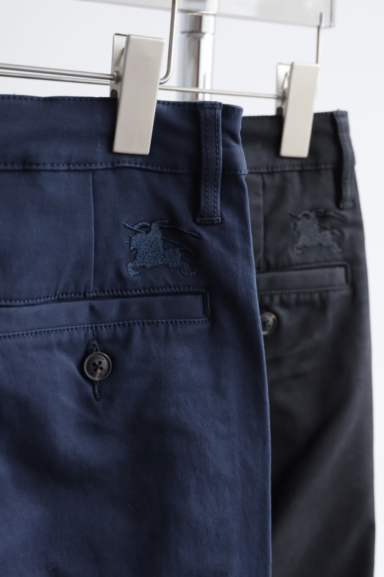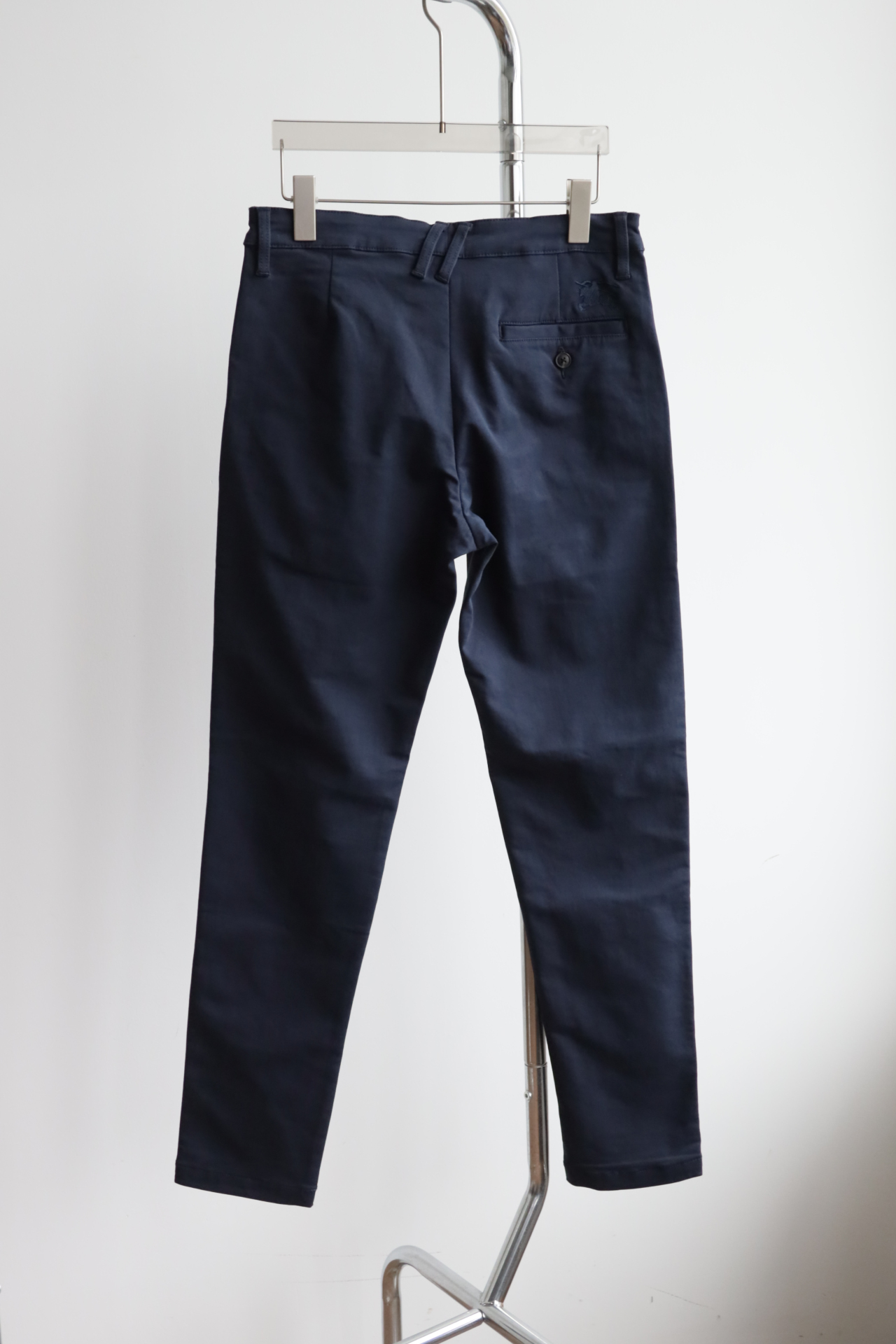 同色斩马刺绣标在后腰侧,大腿侧边格纹旗标装饰