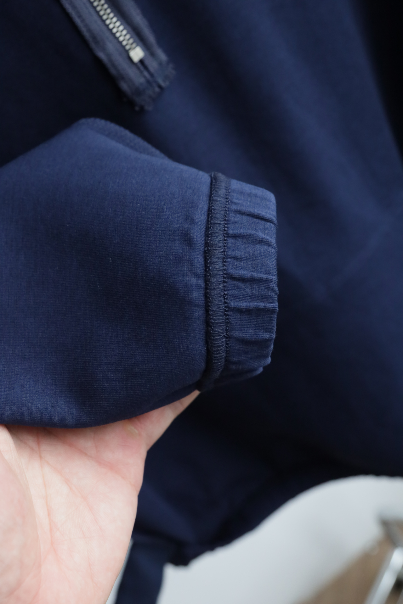 采用双面棉质混纺面料制成拉链开合