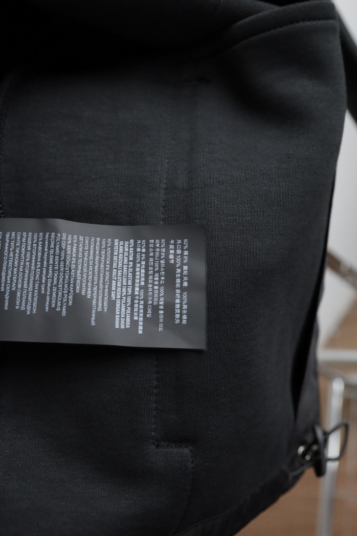 连身式 Re-Ny1on 再生尼龙防风兜帽拼接,增加运动休闲属性