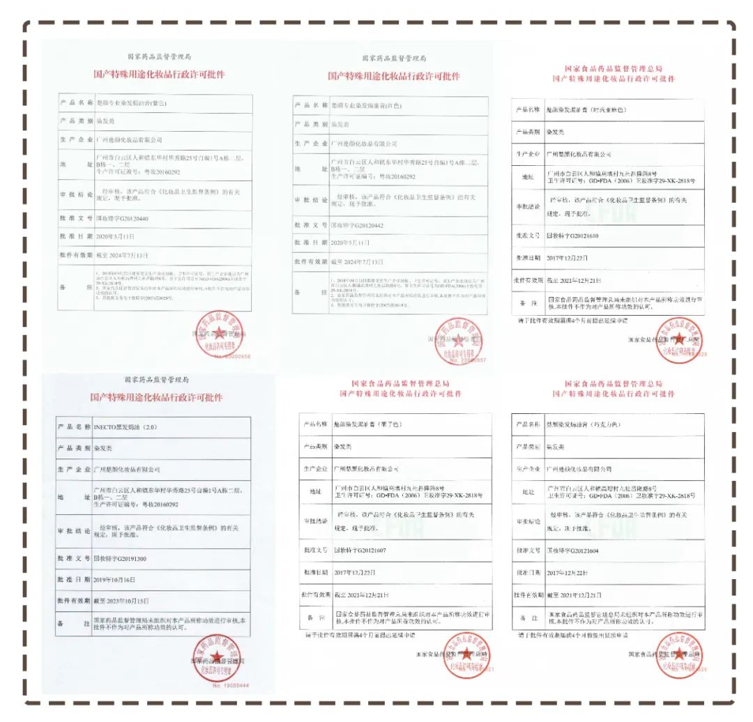 且楚颜染发膏里的每一款颜色都是有【国家特殊用途化妆品行政许可批件】的。