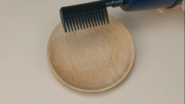 只需要像平时梳头一样,梳一梳就直接把染发膏抹在头发上。