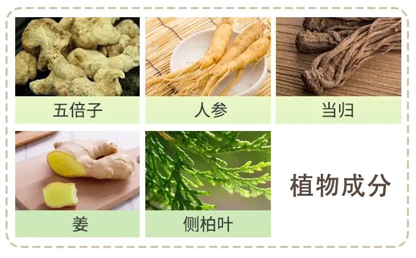 里面还特地添加了五倍子,又名染发草,有染色、解毒、消炎、抗菌之功能。