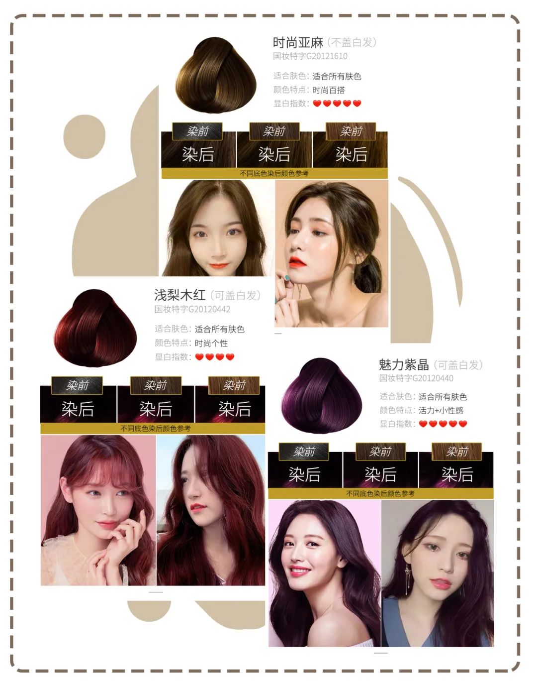想要个性一点的小姐妹可以选择【时尚亚麻】、【魅力紫晶】和【浅梨木红】。