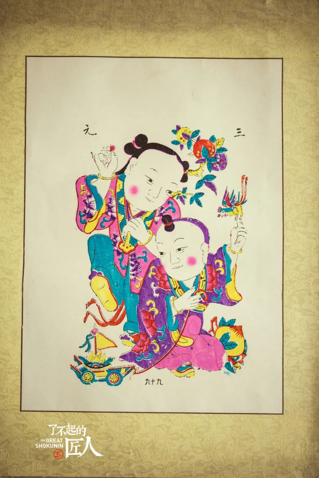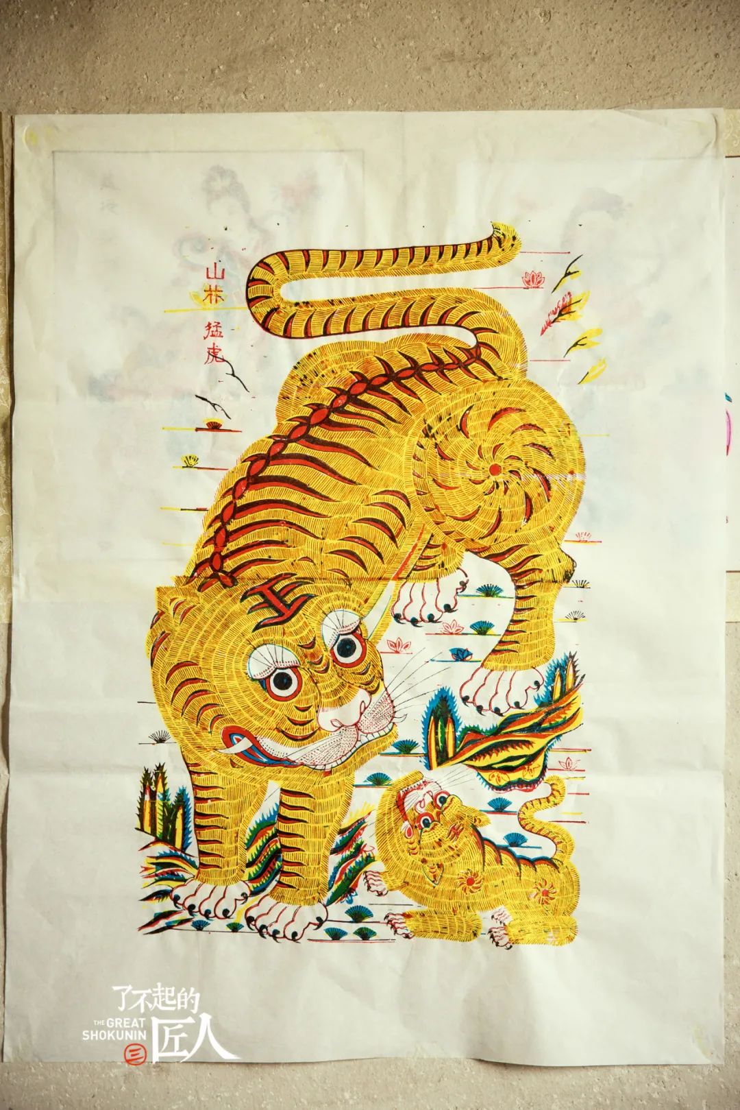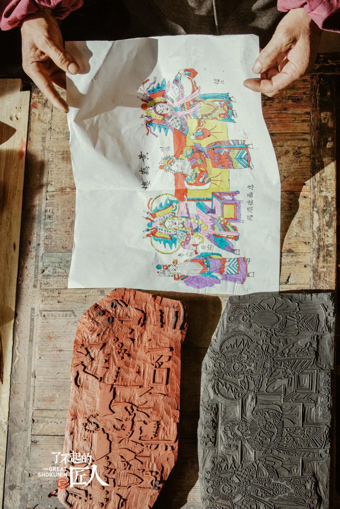 他七岁开始摸刻刀,十四岁时就跟父亲学印年画,十七岁正式进作坊,在二十五岁时便掌握了木板年画制作技艺的全过程。