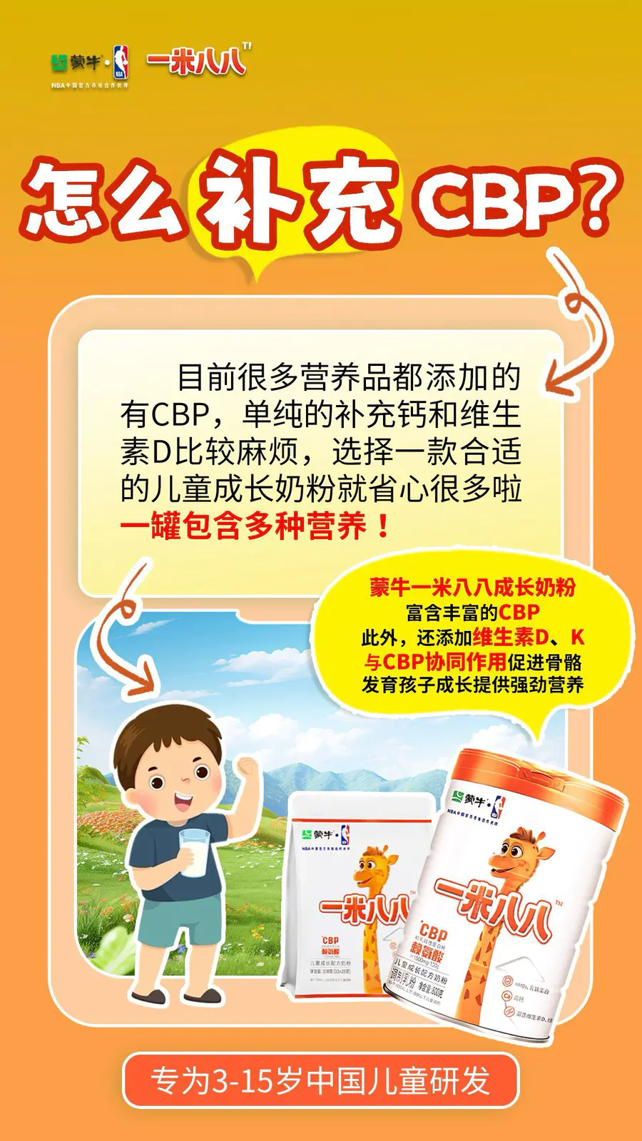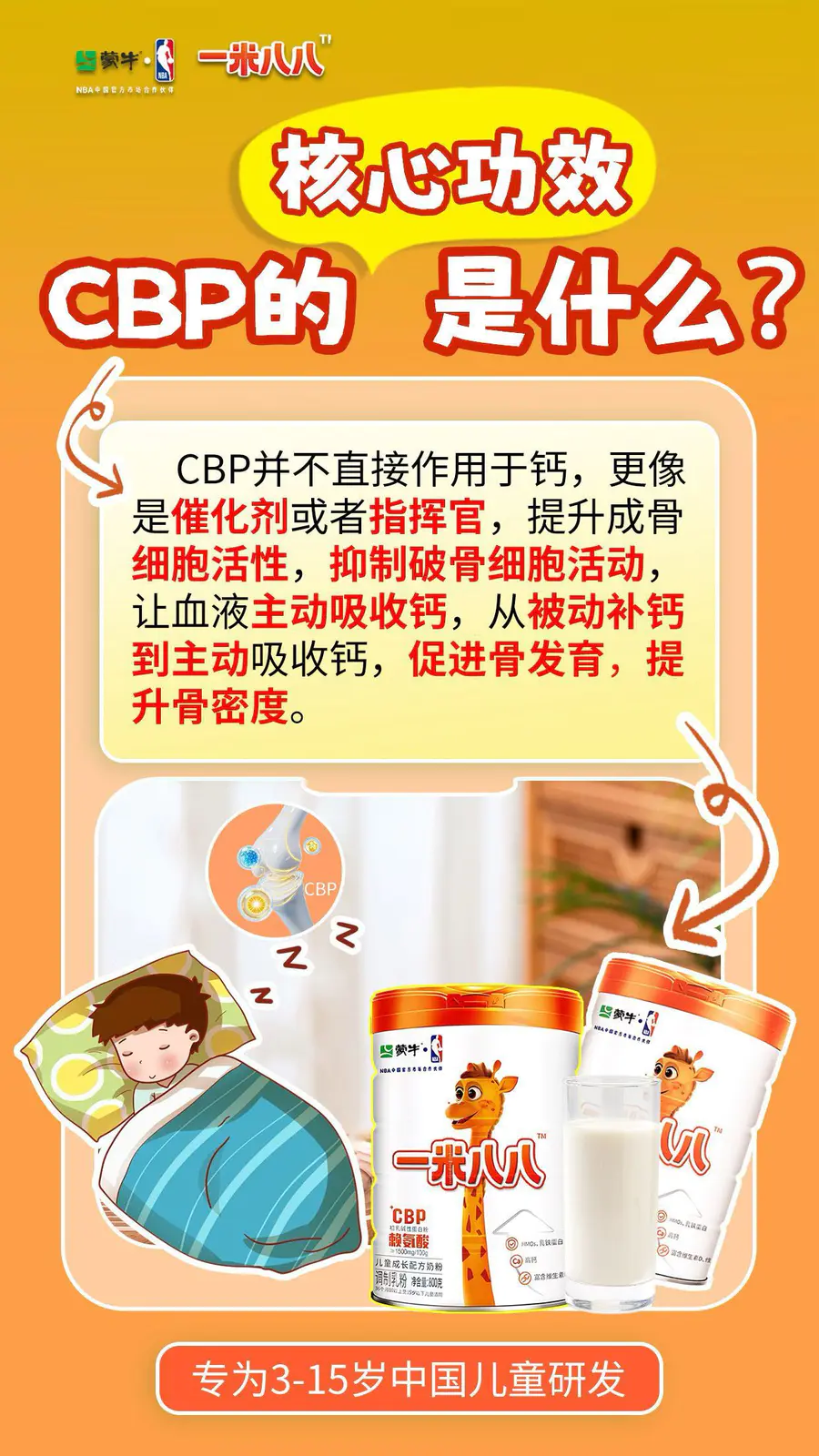 💡一米八八小课堂之CBP👉蒙牛一米八八儿童成长奶粉,高含量CBP促进钙吸收🦴助力钙质吸收,骨骼更强健💪