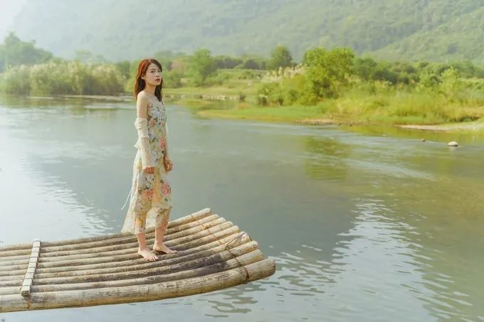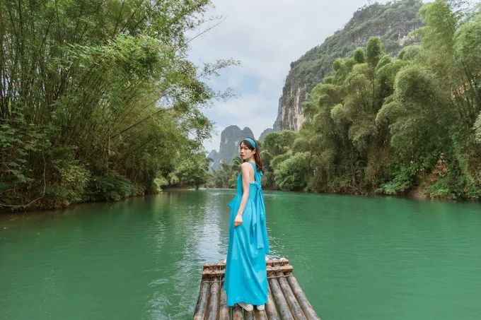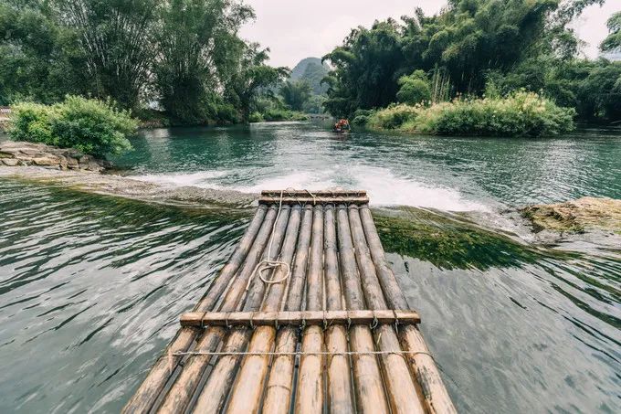 来广西第六天,我终于终于坐上了竹筏。遇龙河漂流是唯一的人工竹筏,更保留了竹筏的原始,游客可以安安静静地漂在遇龙河上欣赏两岸的风光。遇龙河漂流是最正规的,因为竹筏几年前都被政府收购了,现在是景区统一管理,这里没有私家竹筏。遇龙河前半段金龙桥—旧县是热门线路,很多团客走这条,但是推荐走后半段更静谧小众,天气凉快推荐坐久一点欣赏风光,但是如果很热的话,没必要漂上两个小时,太晒了。