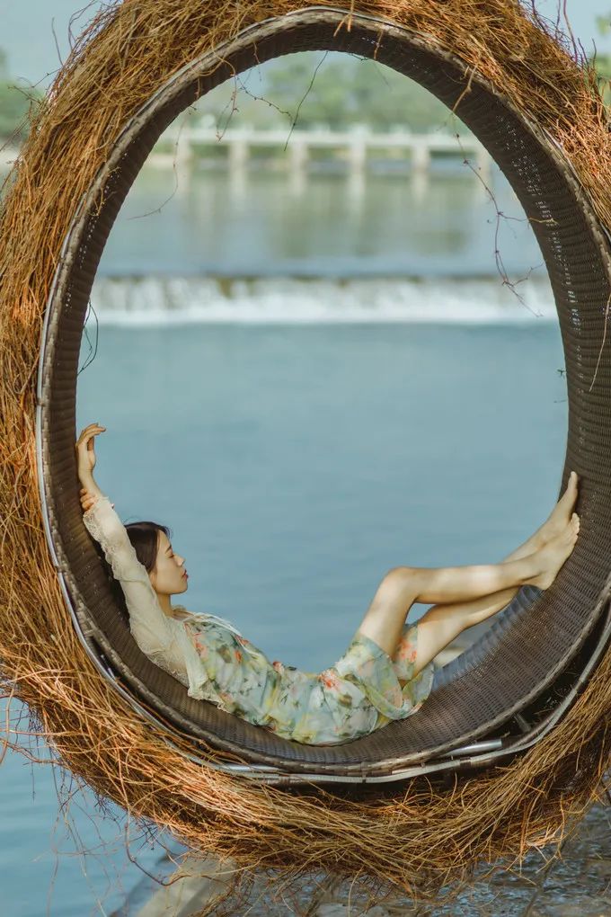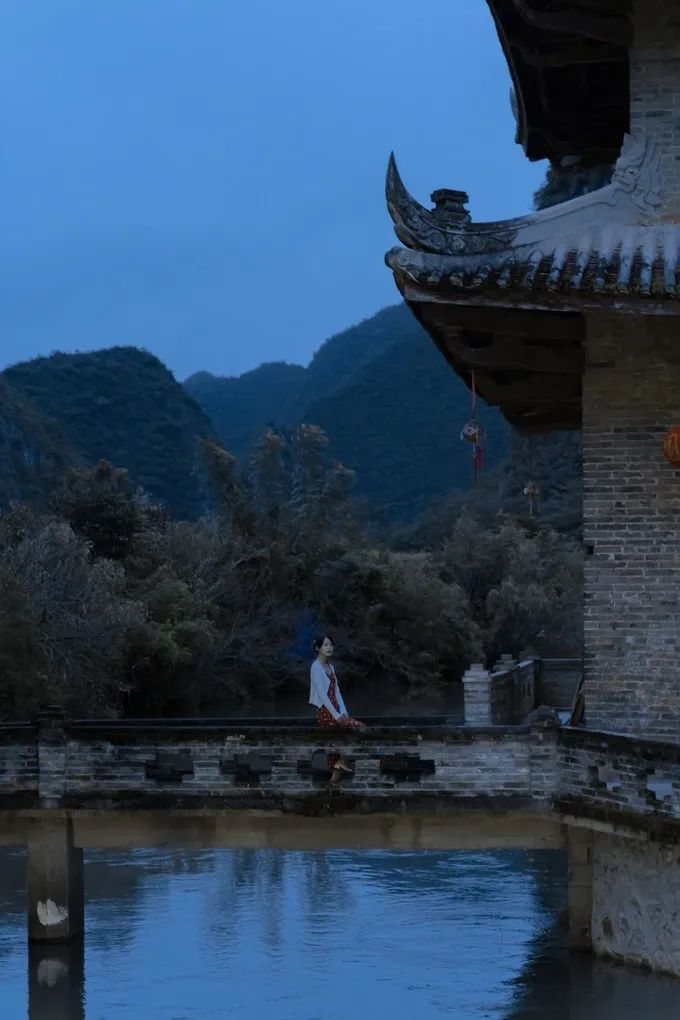 坐在石桥的边上,此时的画面颇有一种“人在画中游”的意境。当然要注意安全,请勿模仿哦~