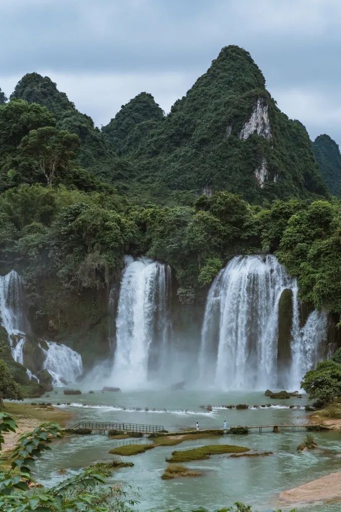 越南的瀑布和我们比简直天差地别,“体型”上就是弟弟和哥哥。而且我们这里有络绎不绝的游客,他们那一上午也就 10 多个人。但是对面有一座桥,看上去很仙侠风,是古装剧很不错的取景地,我们正好看见对面有两个女生穿着很仙侠风的裙子在拍照。