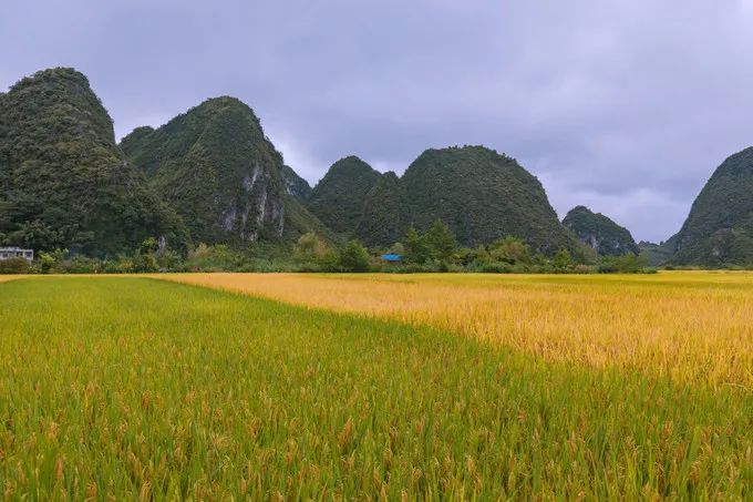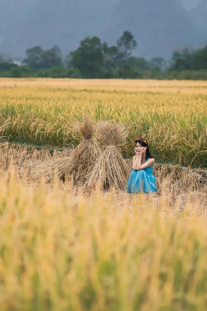 去下一站的路上,经过一片稻田,立马停车。因为今年的雨水比较多,所以 广西 的水稻大部分都还是绿色的,但是有一块田已经微微变黄了,正好出现黄绿分界线。