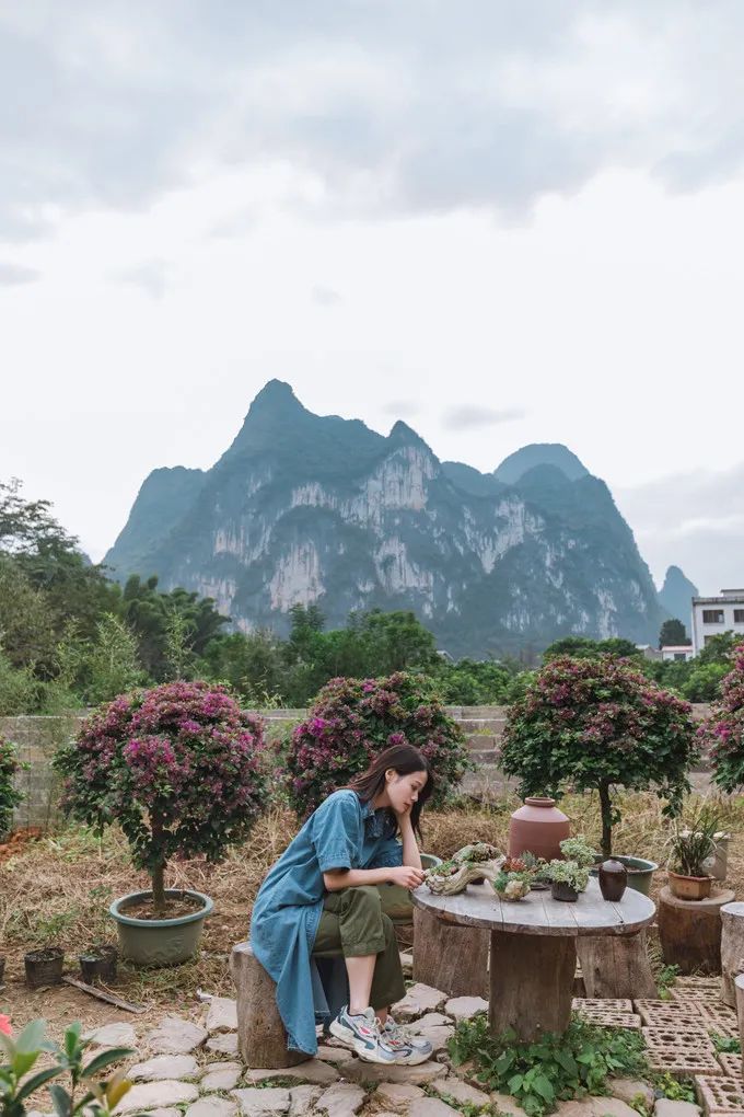 在遇龙河住了两晚,今天要离开阳朔,才记起来民宿有免费的拍照场地,于是吃完早餐匆匆去赶去。