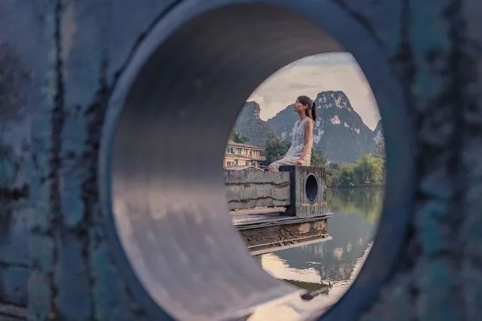 找一个桥上的圆孔,将风景都框在里面,一副水墨画就此天成。也可以将人物放入圆孔中,利用框架构图的人像照就完成了。