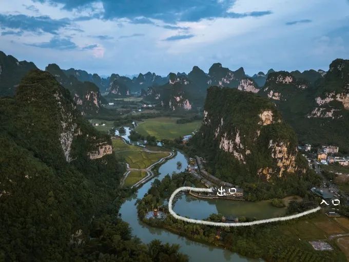 到了现场买票,门票80,含坐竹筏的话110,售票人员向我们极力推荐买竹筏票,说里面走一圈只要10分钟,只有竹筏可以玩,我们拒绝了。事实证明,这个景区真的非常小,基本没什么可看的景色,更没必要坐竹筏。下图展示了整个景区的大小,比起景区内部,外面的景色更好看。