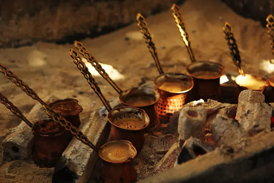 土耳其咖啡作为最早的萃取方式之一,会将被称为切紫薇(Cezve)壶的、有长把手的小锅放在沙盘上,缓慢旋转来吸收沙盘的高温进行煮制萃取。