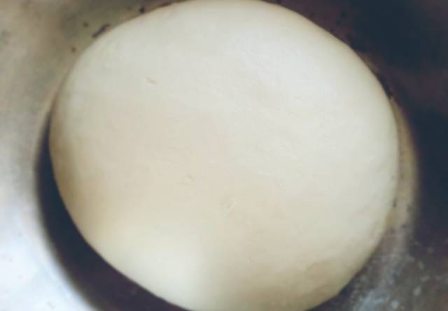 5、把1斤半白面7两水,酵母10克,1平勺白糖,合成面团,醒发40~60分钟;