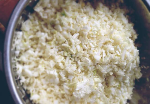 1、这个季节包白菜馅包子,要先拌白菜馅刹水,现在的白菜水汽大;