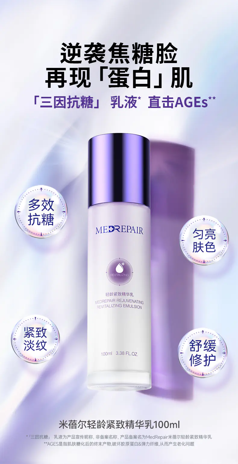 绝佳的抗糖淡纹CP👫,面膜前用乳液打底,让精华吸收加「蓓」,祛黄淡纹效果doubel;面膜后续乳液护肤,击退敏感暗沉“焦糖脸”,亮肤减糖无畏惧🏑