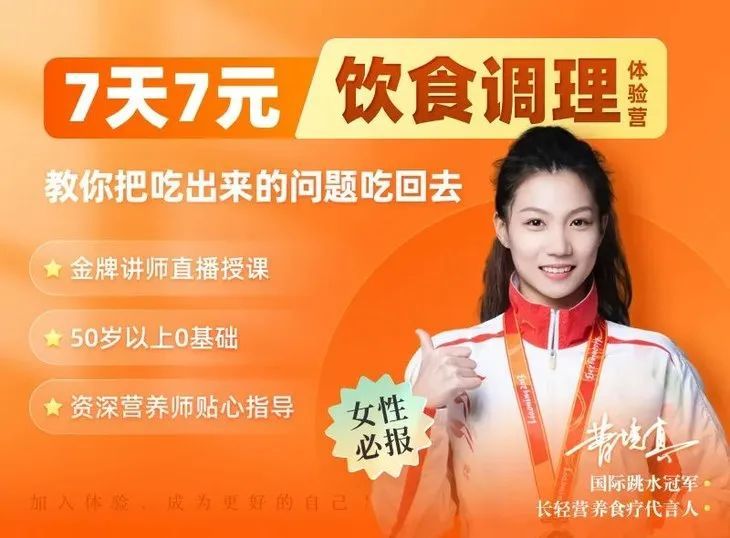 现在,为了让更多的人学习健康饮食,我们特地联合了长轻的营养团队,打造了一套「7天健康食疗体验营」——不卖药,不卖保健品,仅通过日常饮食,来调理代谢,修复受损细胞,帮你恢复健康好状态。