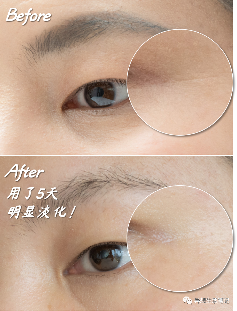 实际效果你们也看到了,我早晚护肤配合按摩用,先在眼周点上眼霜,从里往外画圈圈按摩个4-5圈,热热的蛮舒服,感觉是眼霜在发挥作用。才5天左右,眼尾最深的纹路淡化效果还蛮明显的,超出预期!