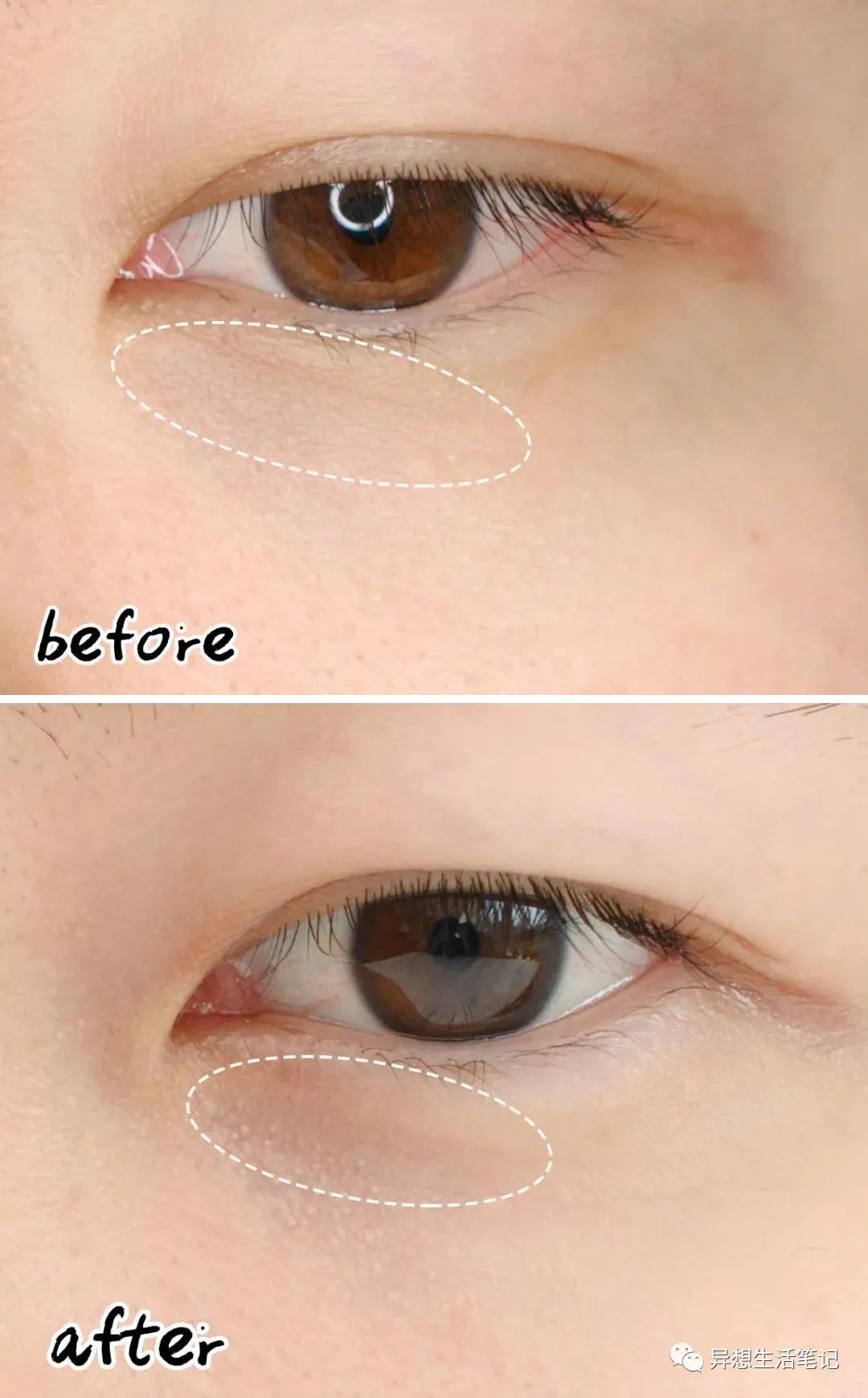 同事泡泡眼下也有一条特别深的纹路,皮肤还很干,平时化妆都会在表情纹上卡出一道道积线。