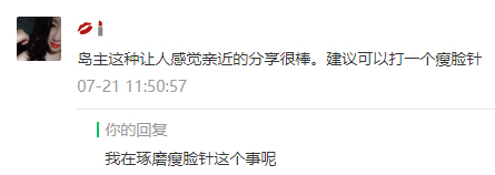 这段时间频繁出镜,真是对上镜胖10斤体会深刻,连皱纹都被放大不少。亲生的读者都追来提议:“岛主,不如去打个瘦脸针吧。”害,我自己也在琢磨呢。 常光顾的美容院好像看穿我,给我安利瘦脸针和除皱针那叫一个热情,还说能预约到阿娇的前夫(好像叫赖弘国,是个医美医生)给我打,就是贵一点?哈哈,怎么离婚了还碰阿娇的瓷啊!