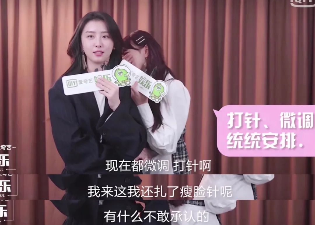 现在医美接受度越来越高,女明星打针可真算不上奇闻。就连参加《青春有你2》选秀的新人赵小棠都敢说:“我来这儿(参赛)还扎了瘦脸针呢,哪个艺人不微整,这都很正常。”哈哈,也是很坦荡了。