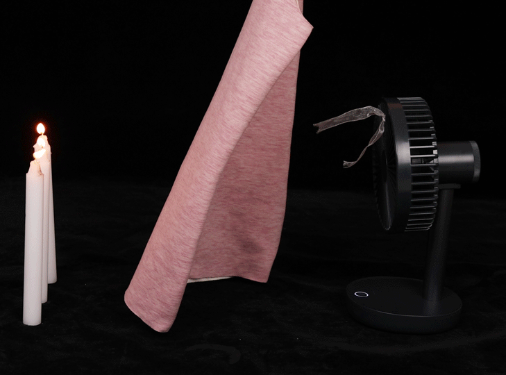 它的织法也有讲究!采用了日本针织工艺,打造出的面料紧实,聚热效果加倍!用蜡烛和风扇试验它的抗风能力,把风扇开到大,只要纳米绒背心不被移开,烛火就纹丝不动~