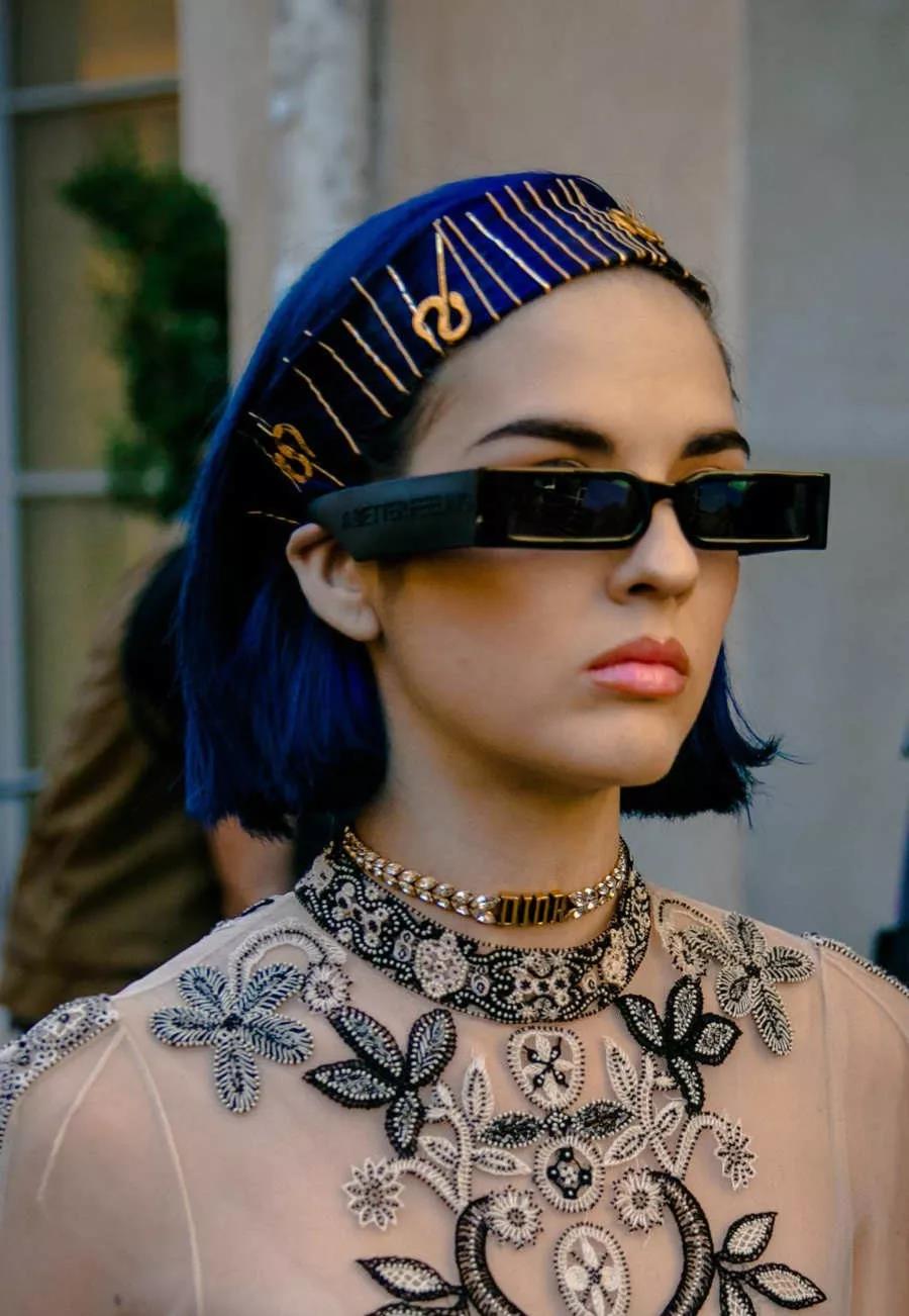 刚刚过去的 2019 秋冬时装周上,也有不少时尚精示范了“怪异”墨镜搭配。
