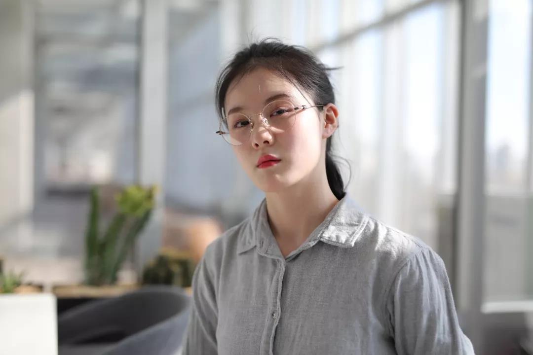除了轻便又贴合脸型,NIDO X 最大的特点是非常减龄,小助理戴上后充满书卷气,有一种回归校园的青春感。