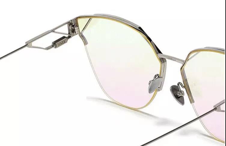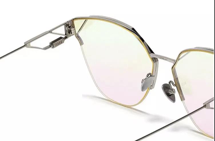 使用金属进行包边,并在镜片上用切割的金属色块进行了异材质的混搭。