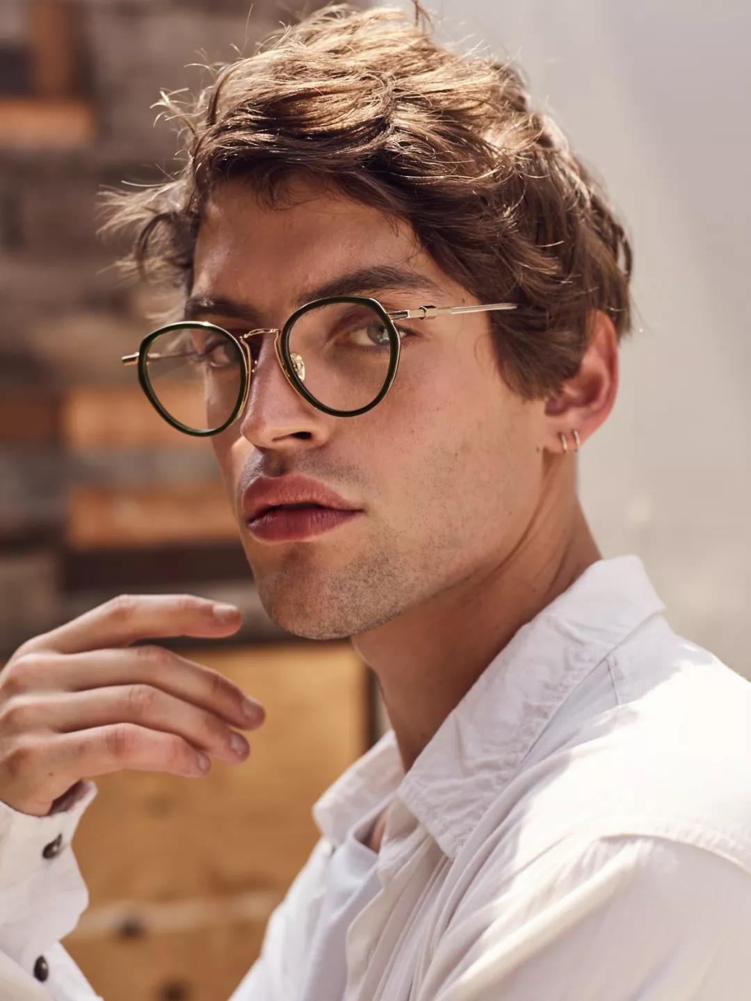 GEK 平光镜,从建国初期知识分子的复古圆框演变而来,在极致纤细而又舒适经典的边框上增加旋轴的设计,简约却更考究细节。