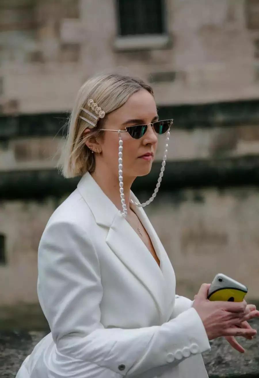 其实最吸引姐的,还是它镜架上的小链条,算是和挂脖式的 Vintage 墨镜,做了一个小小的融合。