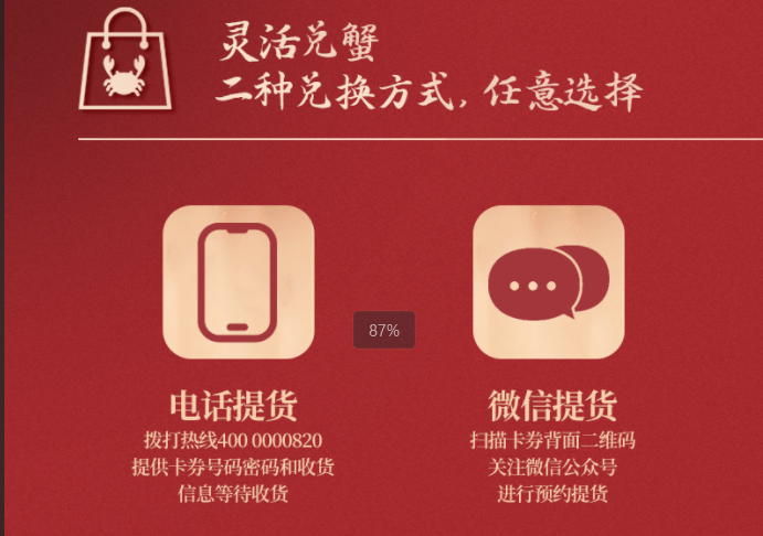 兑换大闸蟹渠道便利,两种方式任选,简单易操作。