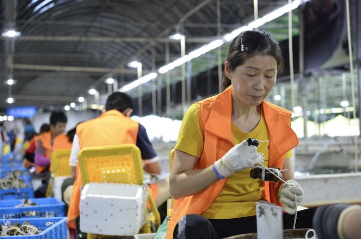 也是在这,大闸蟹们会被经历最后的挑选。在暂养池里因为打架缺胳膊少腿的,都会被严格淘汰。