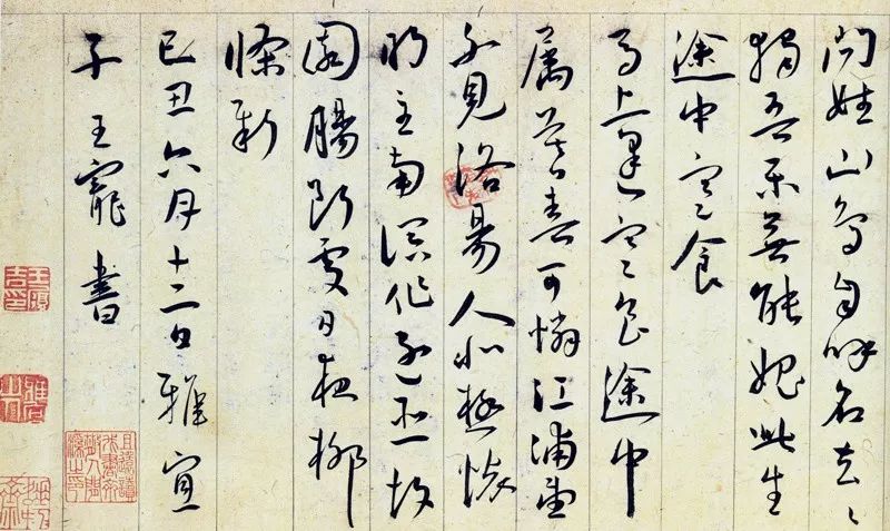 张即之、刘镛等善于用墨生趣。用墨多重要?书法是无声的音乐,无形的舞蹈。求变化中有呼应,使整体和谐,有强烈的节奏和视觉冲击力。用好拙笔,用略慢,动中有静,写出墨趣。