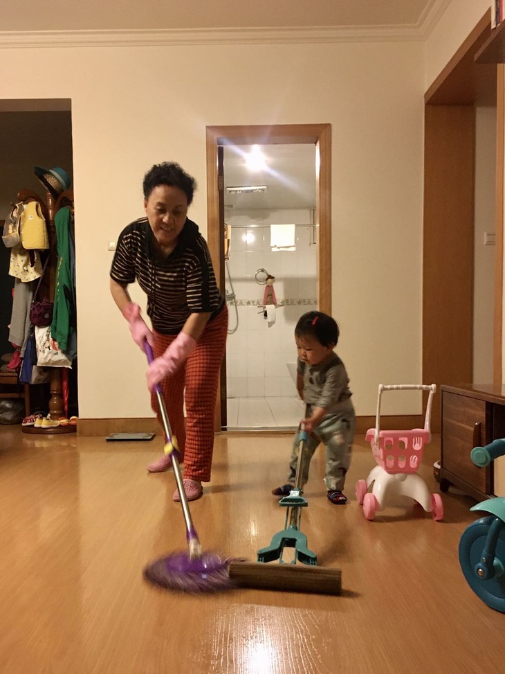 每晚睡前也要听小鸡球球帮妈妈做事的音频,白天看我扫地拖地还会来“帮妈妈做事