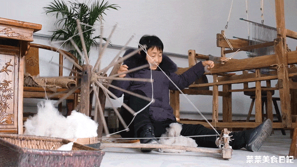 木头纺车“嘎吱嘎吱”、梭子在纱线中穿梭,仿佛把空气织进了纱线中。