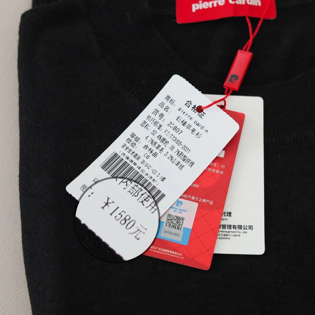 这款法国皮尔卡丹男士圆领羊毛衫,线下专柜价/吊牌价卖到1580元。