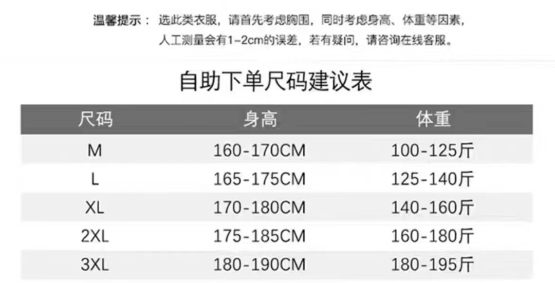 成衣大概重量:M码≈230g L码≈240g XL码≈250g,以此类推。