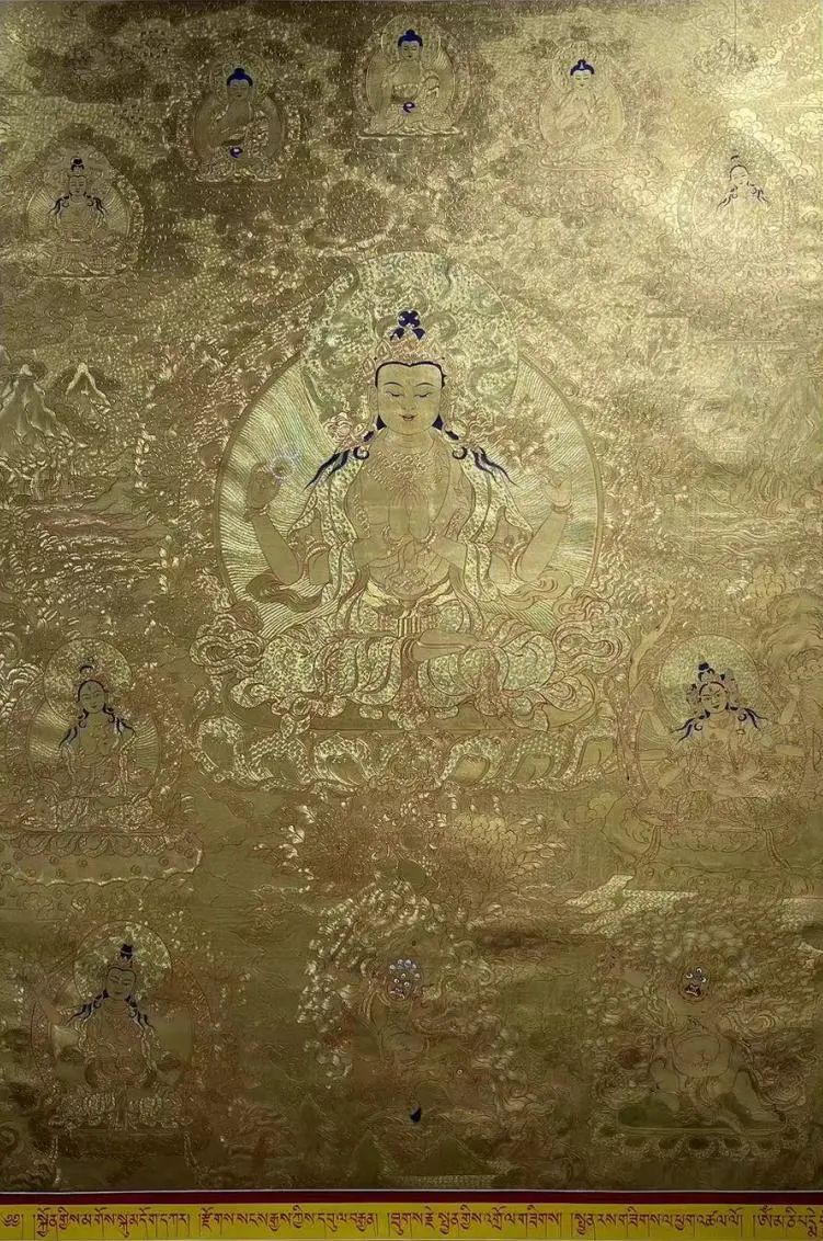 唐卡在藏语中的意思是“卷轴像”,即用彩缎装裱后悬挂供奉的卷轴作品,由于做工极其精细和复杂,一幅具收藏价值的唐卡甚至需要三年五载的时间去创作,所用颜料是经久不退的矿植物原料,甚至铺上珍珠粉,镀上金线金箔,